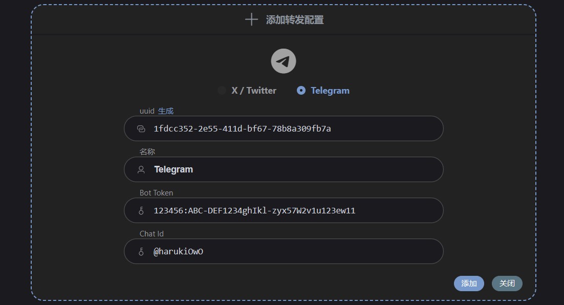 在 Tweblog 填写 Telegram 转发配置