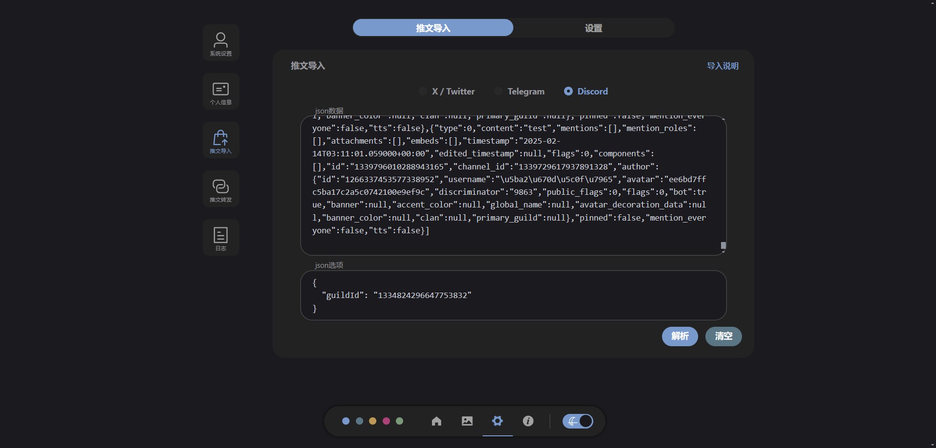 由于 discord 的 messages 中不包含服务器 id,但拼接消息链接时服务器id是必要的,所以需要编写json选项来指定服务器id。json选项还可以用来对消息发送者进行基本的过滤。
