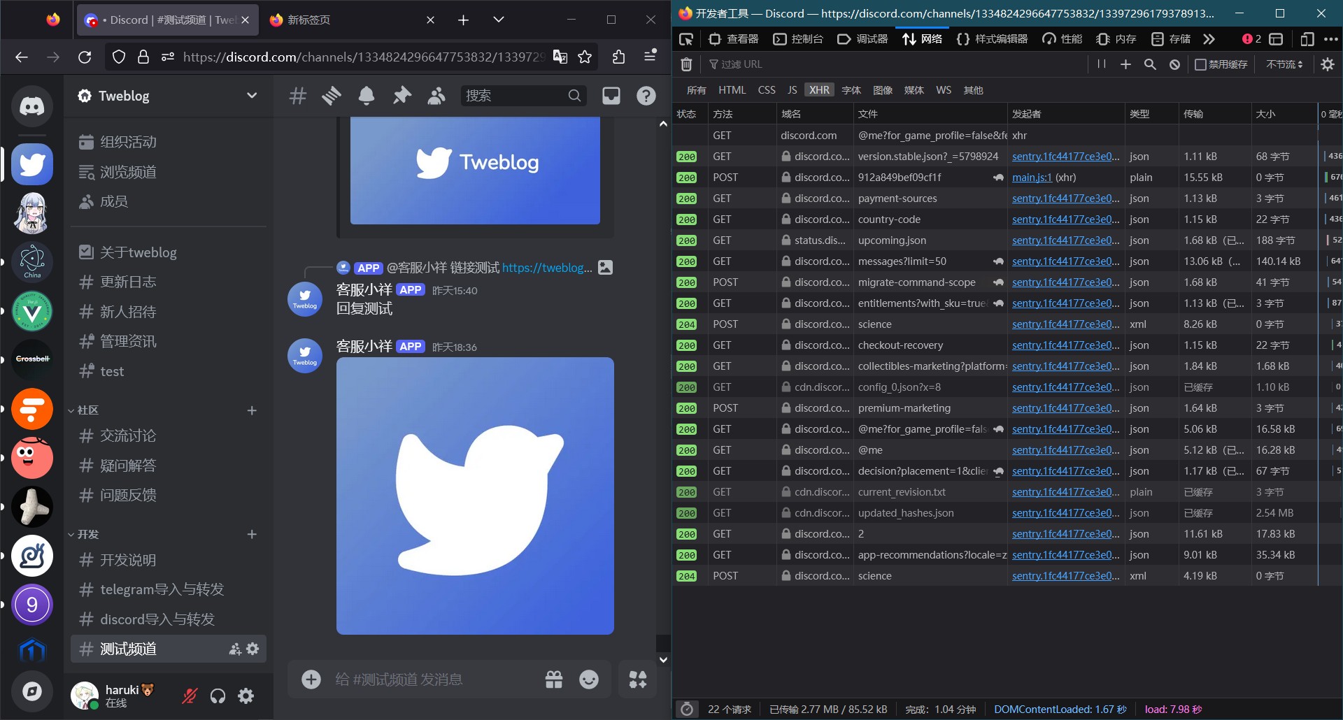 此时也可以切换频道(不要切换服务器),来同时获取多个频道的 messages