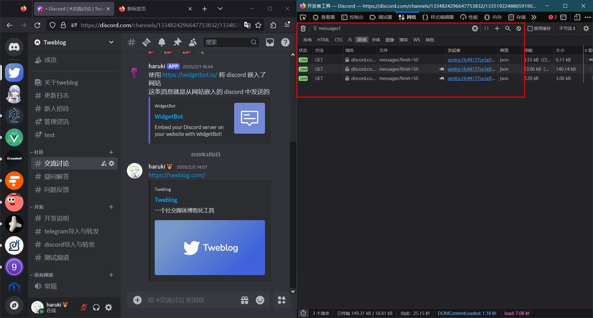 在 discord 服务器中,进入要导入的频道,按 F12 打开开发者工具,然后刷新页面。