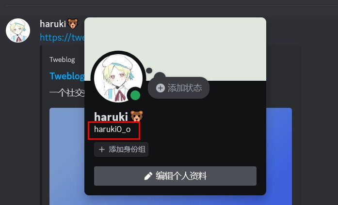 1335491846549536860 是消息id(messageId)关于用户名,指的是这个 haruki0_o