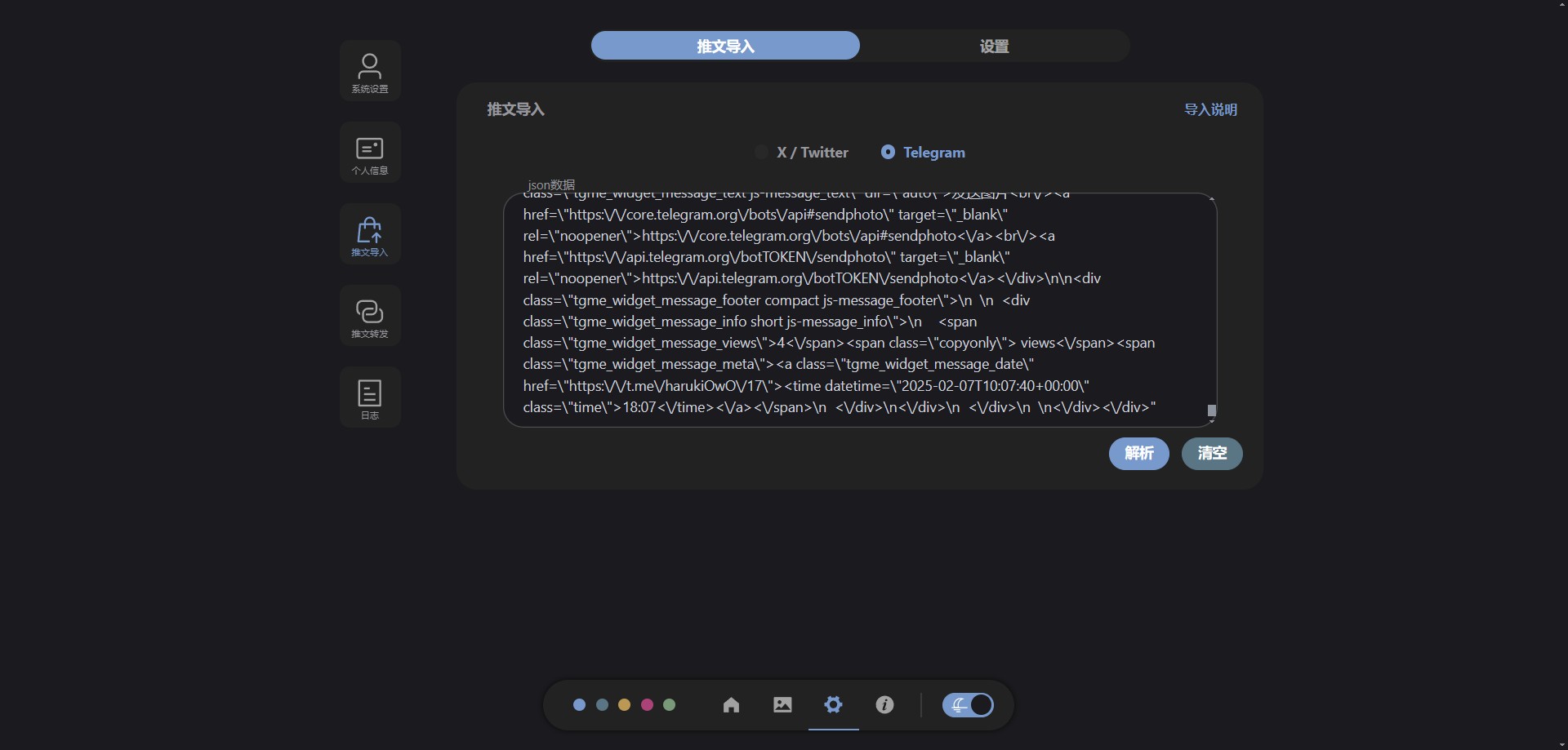 之后粘贴到推文导入页面的文本域中,即可解析并导入