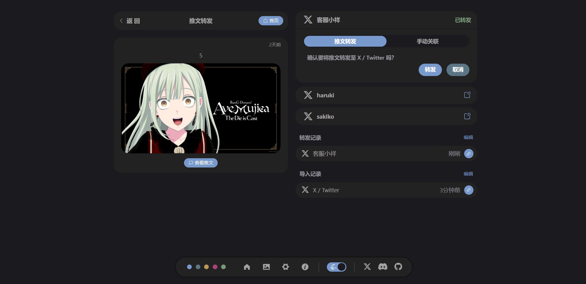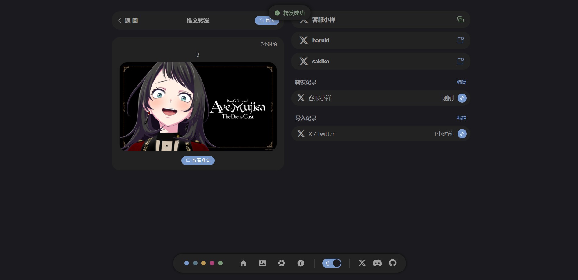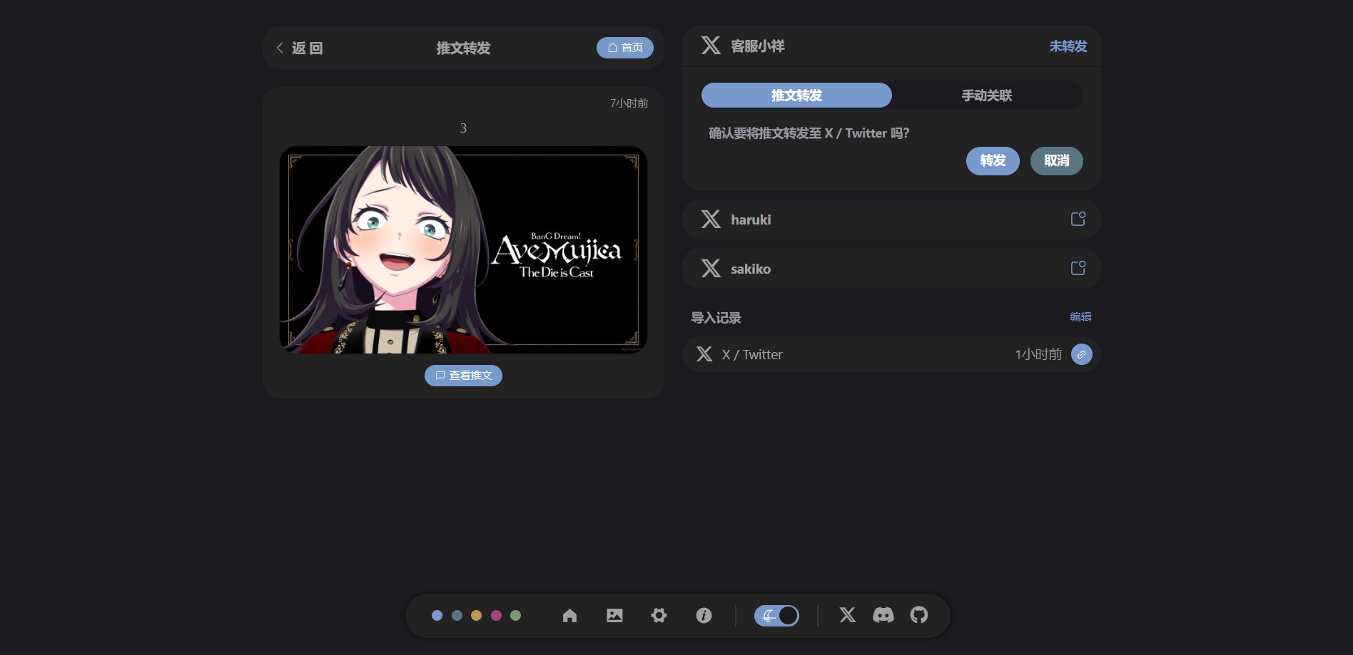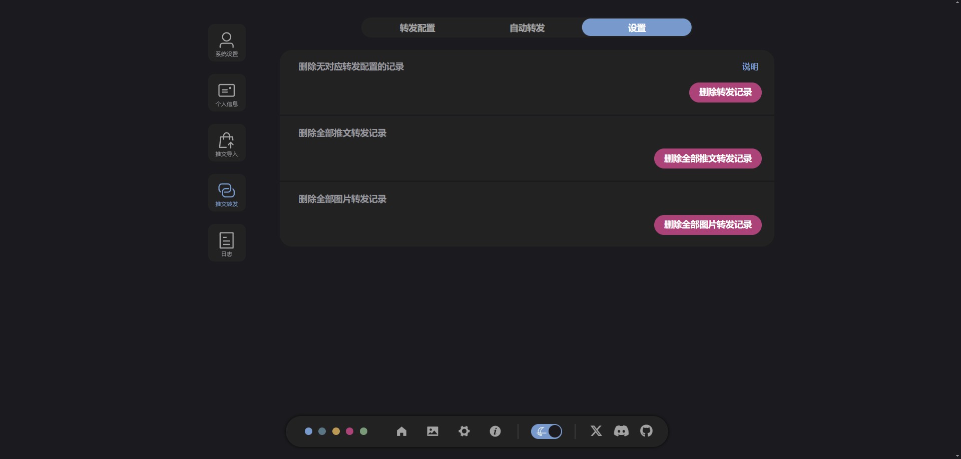 不过即使删除了 转发配置,还是不建议使用此功能删除转发记录。如果被转发的推文又被导入,转发记录缺失会导致推文被重复创建