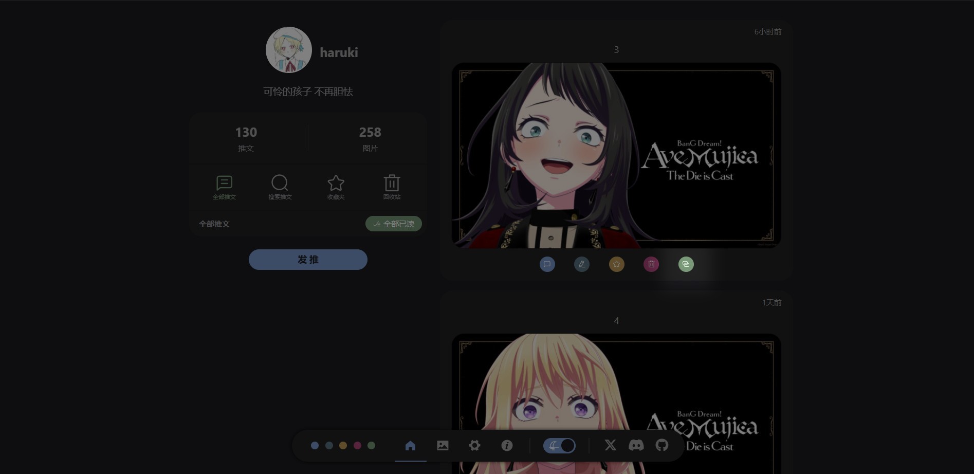 - 关于推文总数 可能和首页显示的不一致,首页的推文个数包含了回收站中的推文,而这里是不包含的