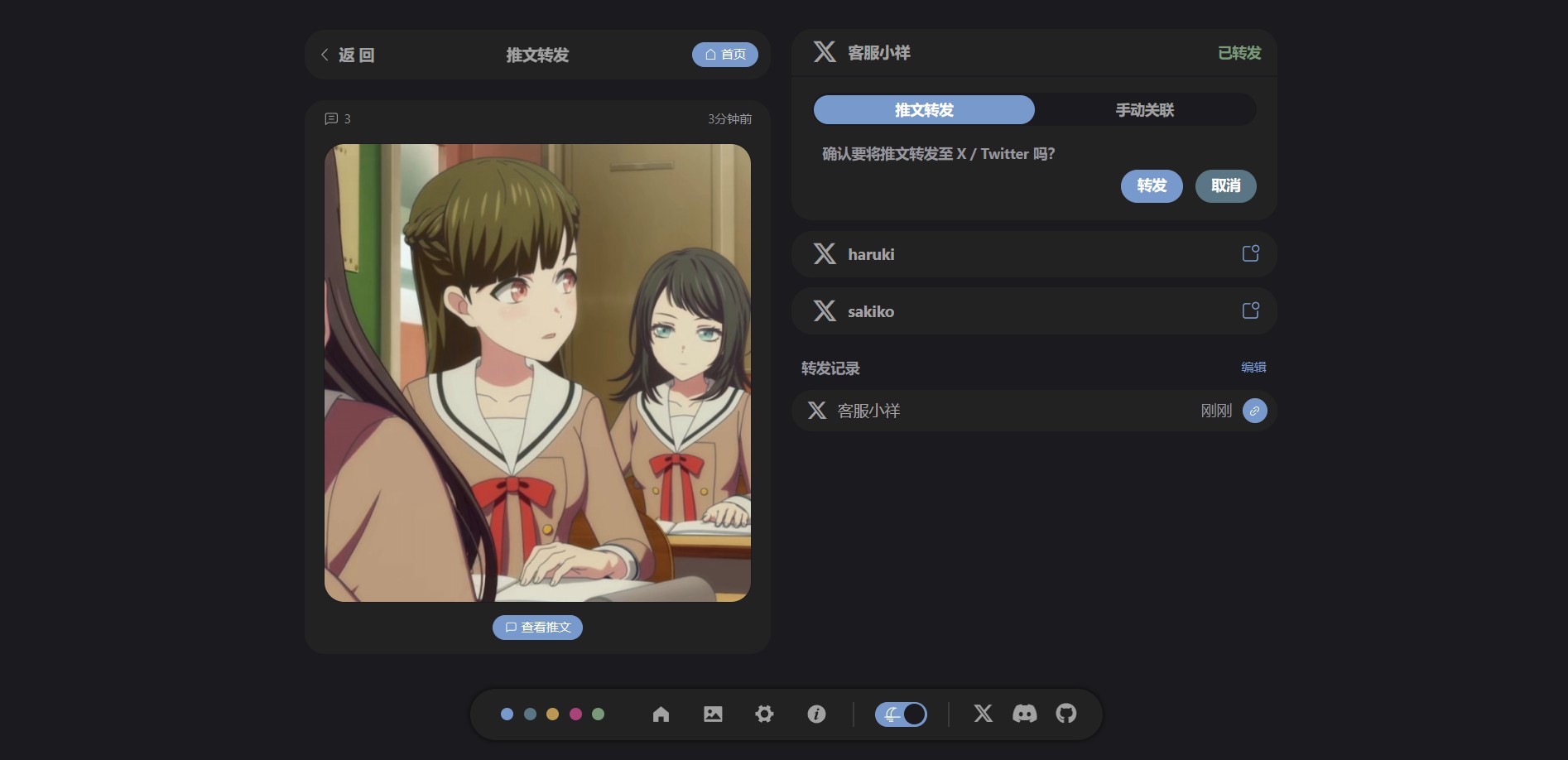 点击推文卡片右下方绿色按钮,即可进入转发页面