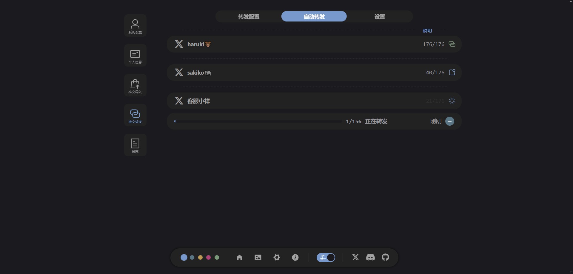 在自动转发页面,将显示每个转发配置对应的条目,右侧显示已转发的个数和总推文个数